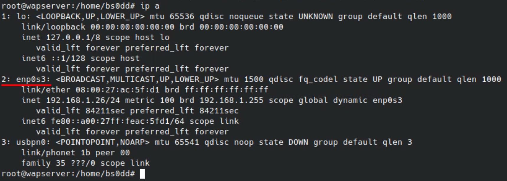 В моем случае интерфейс называется enp0s3. Создаем правило для iptables: