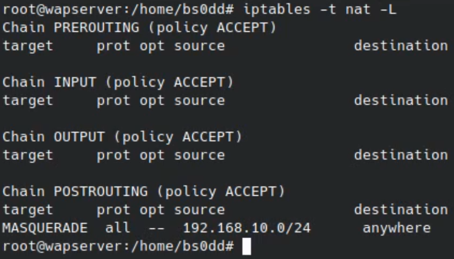 Правило, как и положено, находится в таблице POSTROUTING. Чтобы при каждом запуске не терять настройки iptables, можно установить пакет iptables-persistent.