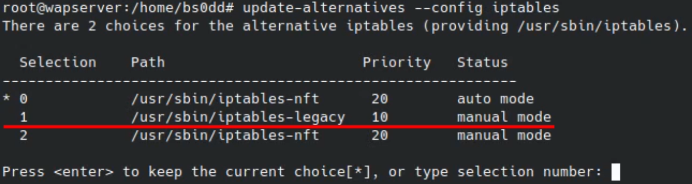 Теперь для роутинга нам понадобится фильтр пакетов - iptables (netfilter). Он и будет выполнять роутинг между сетями. Для начала переключим его в режим legacy.